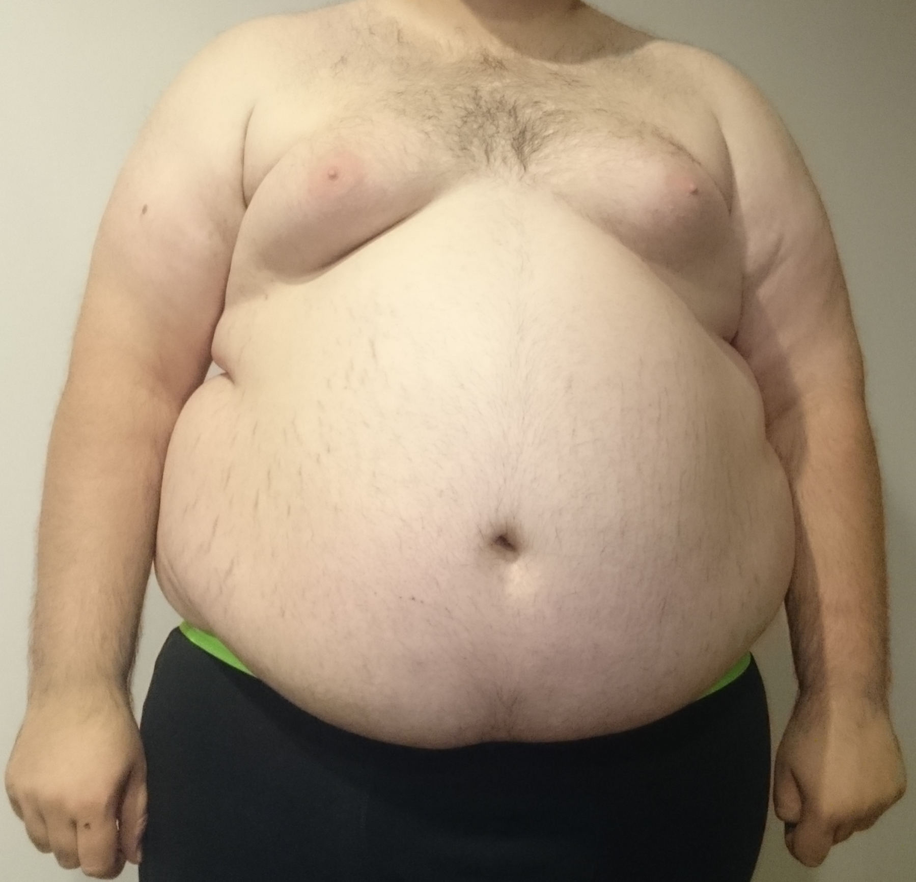 Typisches Erscheinungsbild bei Fettverteilung, die sich besonders auf den Bauchbereich konzentriert (Apfeltyp)