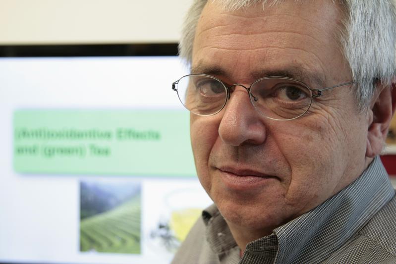 Auch privat ein Teegenießer: Georg Gescheidt-Demner vom Institut für Physikalische und Theoretische Chemie der TU Graz. Quelle: TU Graz (idw)