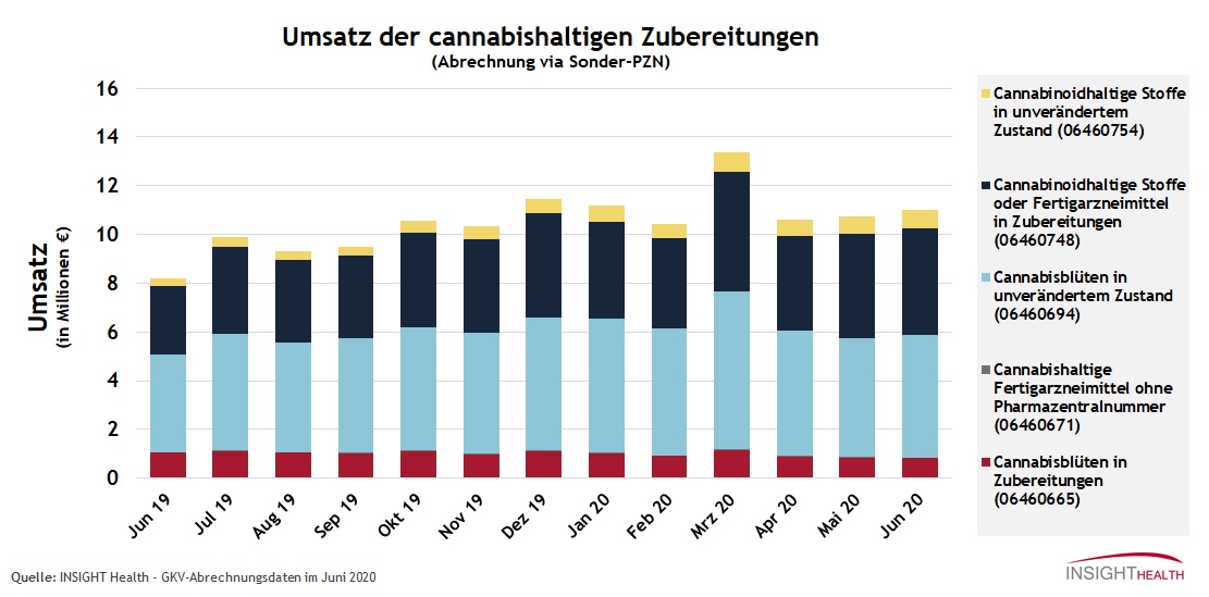 Umsatz der cannabishaltigen Zubereitungen. Bild: "obs/Insight Health"