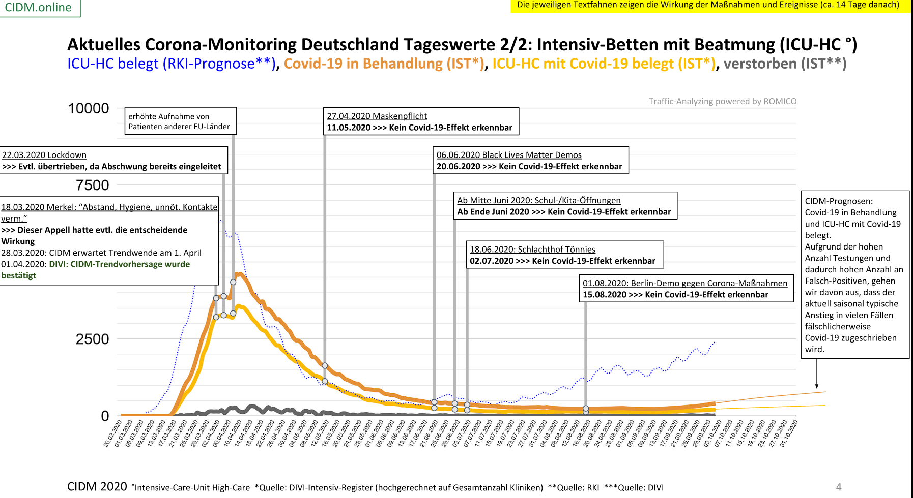 Aktuelle Intensiv-Betten Belegung mit und ohne Beatmung: Alles auf allerniedrigstem Niveau, Stand 03.10.2020