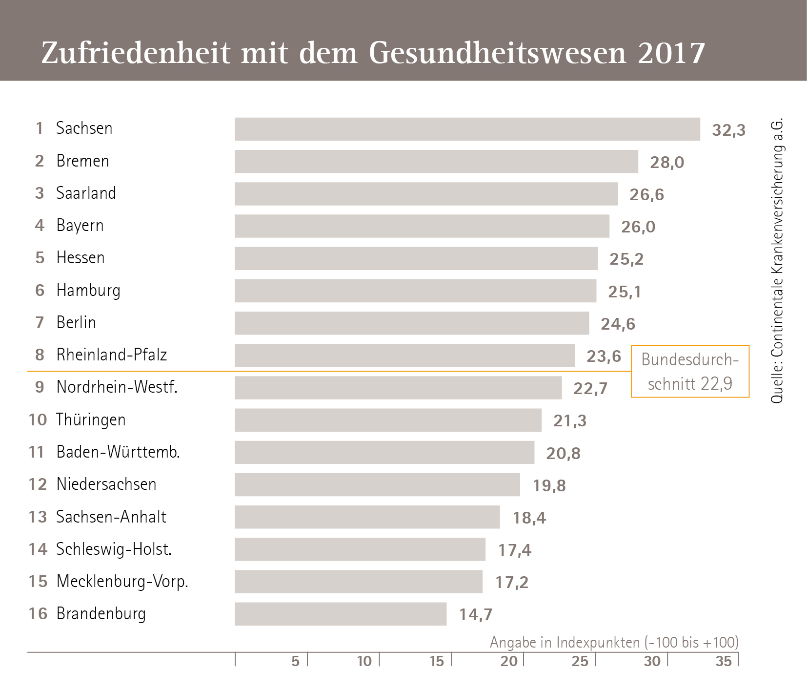 Zufriedenheit mit dem Gesundheitswesen nach Bundesländern. Bild: "obs/Continentale Krankenversicherung a.G."