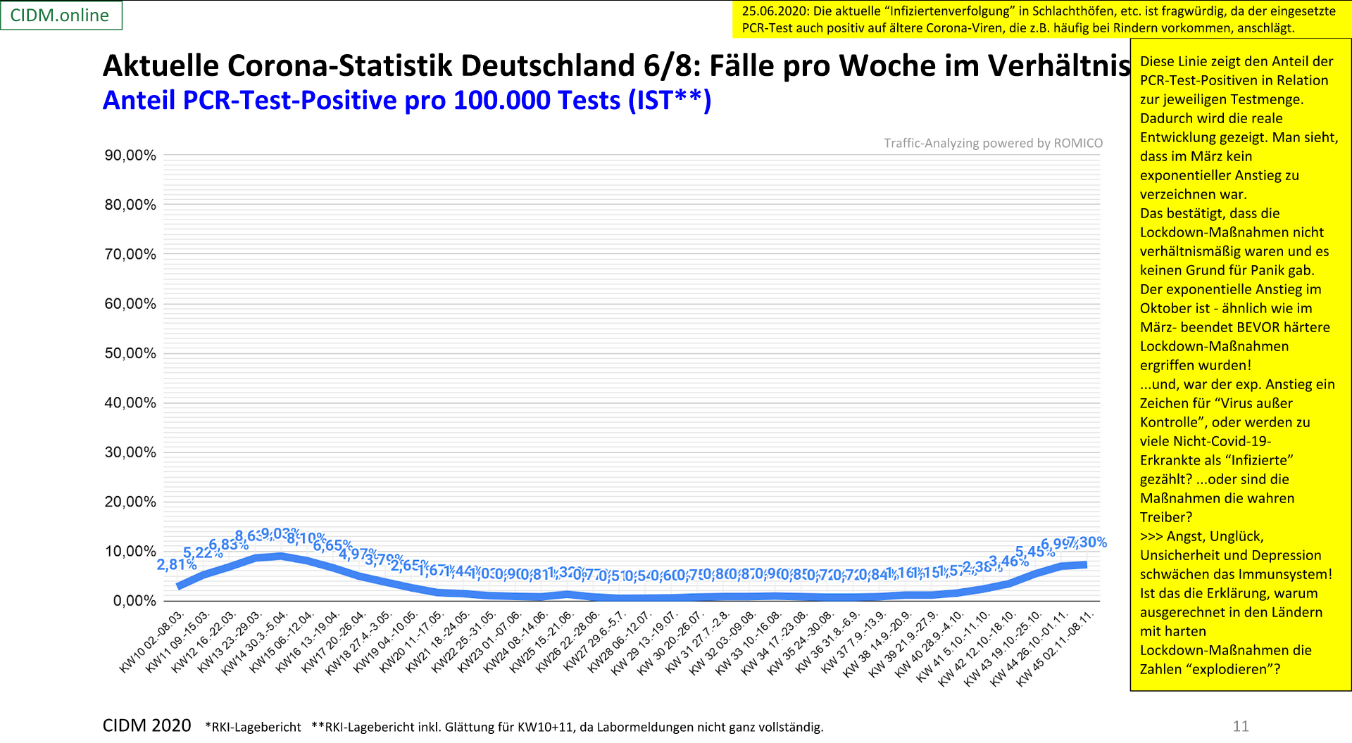 Anteil der PCR-Test-Postive pro 100.000 Tests, Stand 08.11.2020