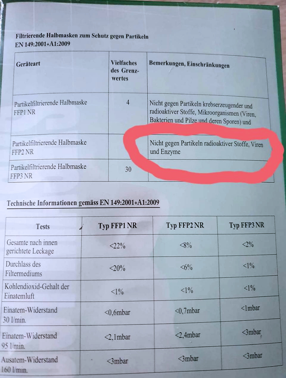 Packungsbeilage: FFP2 Masken haben keine Schutzwirkung gegen Viren, schaden aber der Gesundheit des Trägers