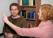 ...und dabei gleichzeitig beide Gehrinhälften durch Augenbwegungen stimuliert werden. Bild: Universitätsklinikum Münster (UKM)