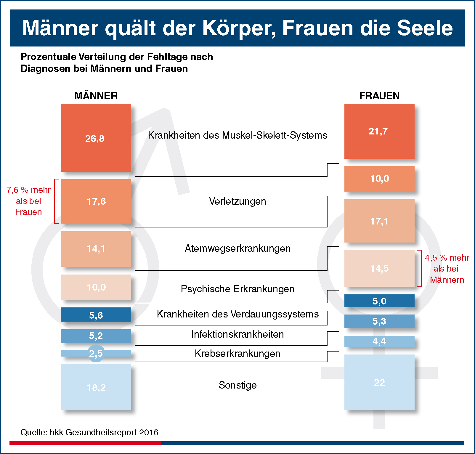 Arbeitsunfähig: Frauen häufiger - Männer länger