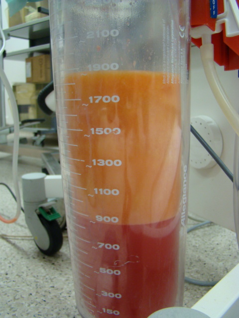 Liposuktion. Aspirat mit abgesaugtem Fettgewebe und Tumeszenzlösung
