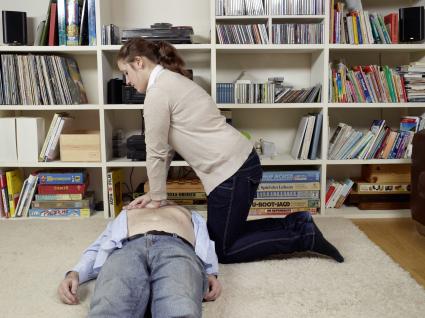 Bei der Herzdruckmassage drückt der Helfer mit gestreckten Armen 100 bis 120 Mal die Minute fest auf die Mitte des Brustkorbs. Geübte Helfer beatmen nach 30 Mal Drücken zweimal. Bild: "obs/ASB-Bundesverband/Thekla Ehling"