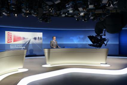 ARD/NDR, Jan Hofer präsentiert erste Tagesschau aus neuem Studio. Jan Hofer spricht die Tagesschau im neuen Studio. Bild: NDR/Thorsten Jander