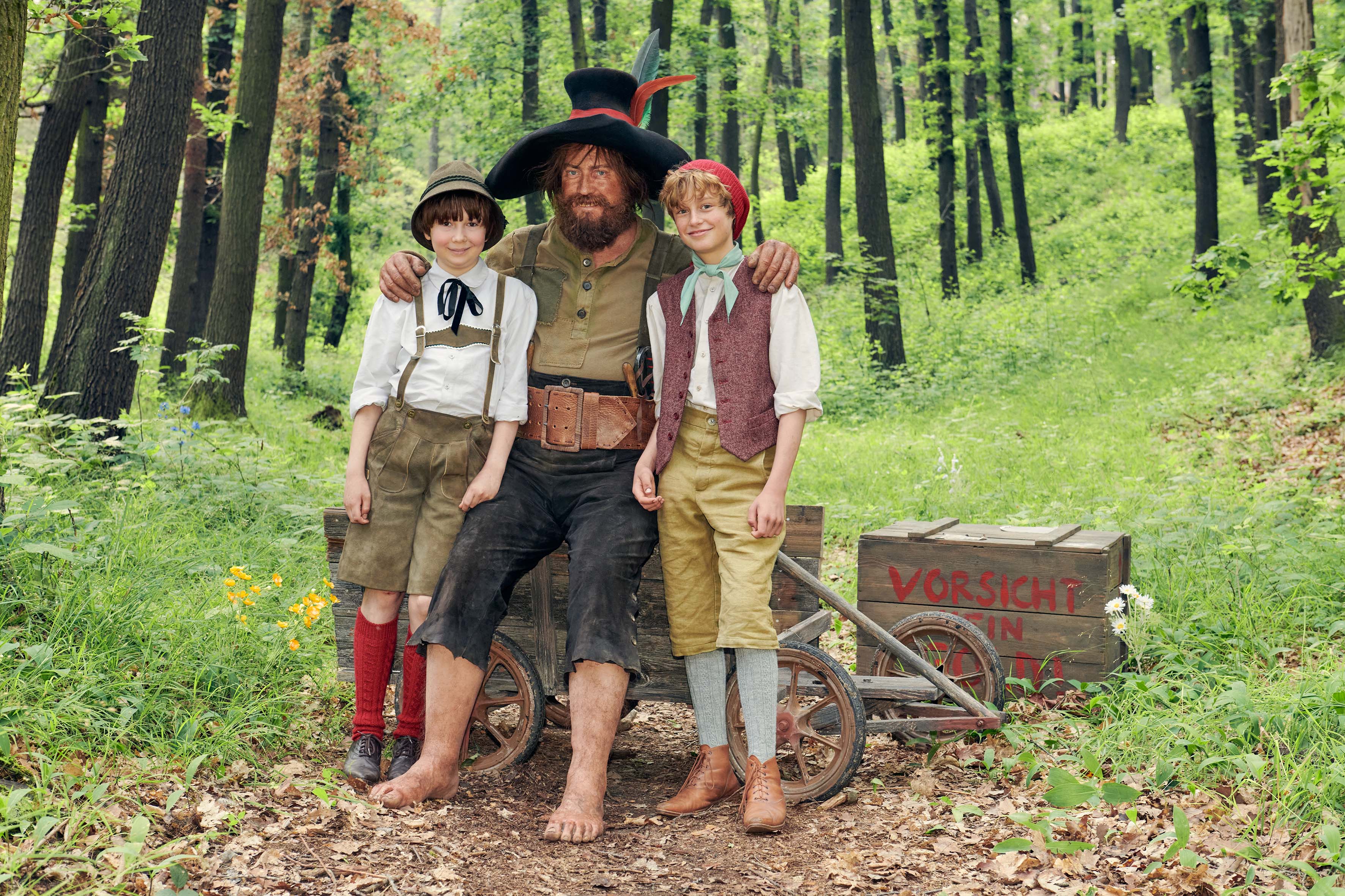 Von links: Seppel (Benedikt Jenke), Räuber Hotzenplotz (Nicholas Ofczarek) und Kasperl (Hans Marquardt) Bild: ZDF Fotograf: Walter Wehner