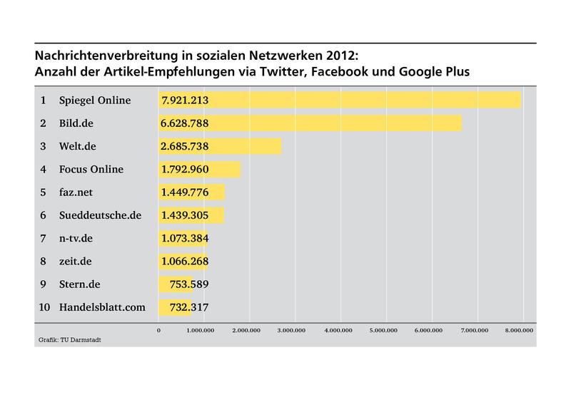 Zurück zu Nachrichtenverbreitung in sozialen Netzwerken: Spiegel Online vor Bild.de, Konkurrenz abgeschlagen
