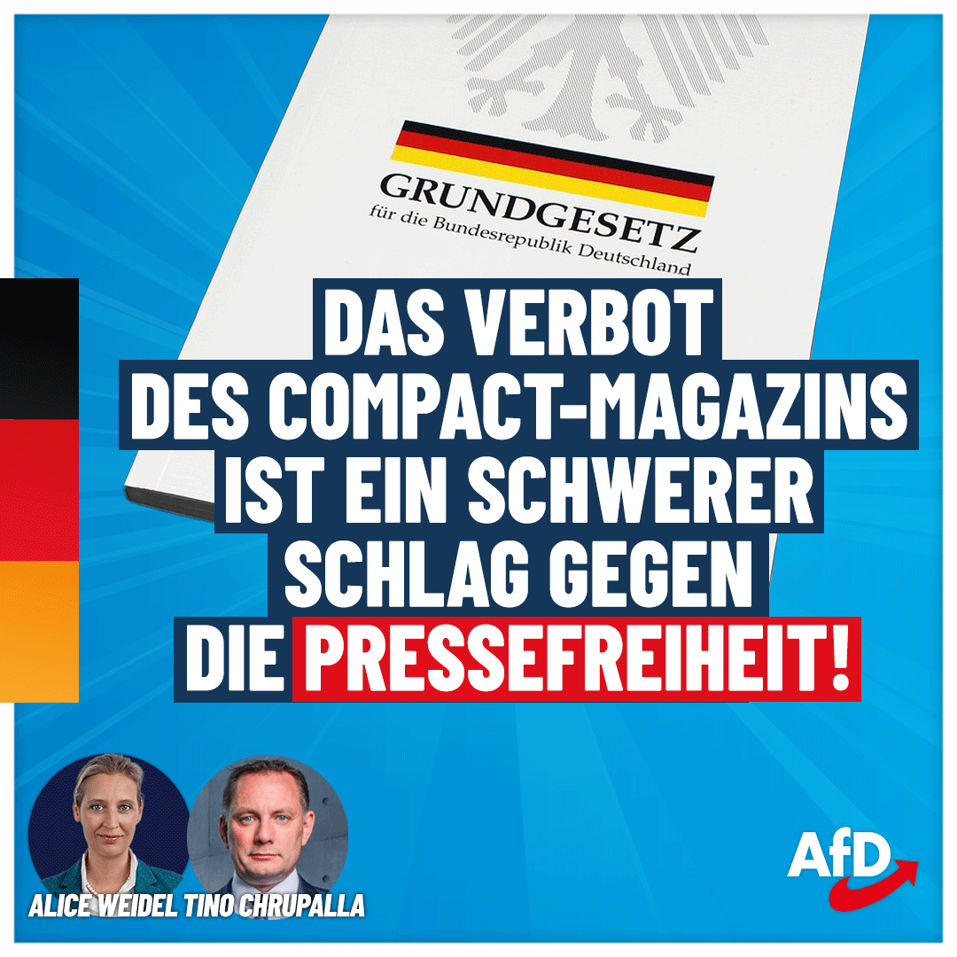 Zurück zu Alice Weidel/Tino Chrupalla: Das Verbot des Compact-Magazins ist ein schwerer Schlag gegen die Pressefreiheit