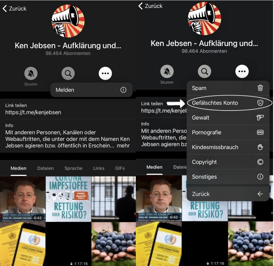 Auf den folgenden Bildern wird veranschaulicht wie der Fake-Kanal gemeldet werden kann. Bild: KenFM