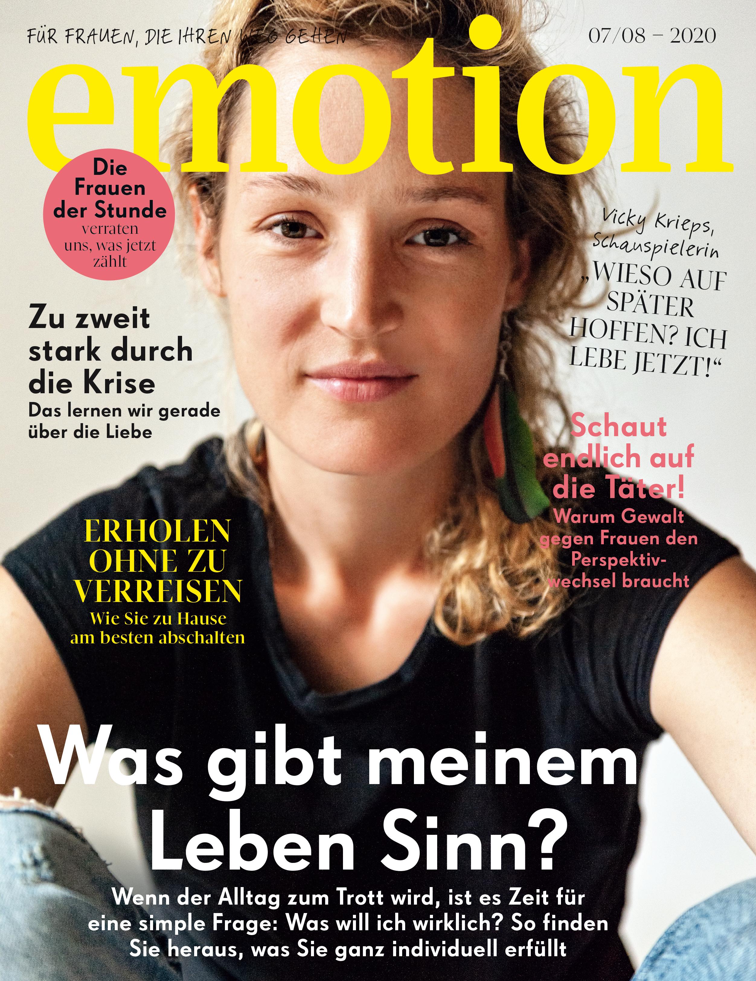 EMOTION Verlag GmbH, Titelbild zu Ausgabe 07/08_2020, EVT: 24.06.2020, Titelthema: "Was gibt meinem Leben Sinn?". Bild: "obs/EMOTION Verlag GmbH/Puria Safary"