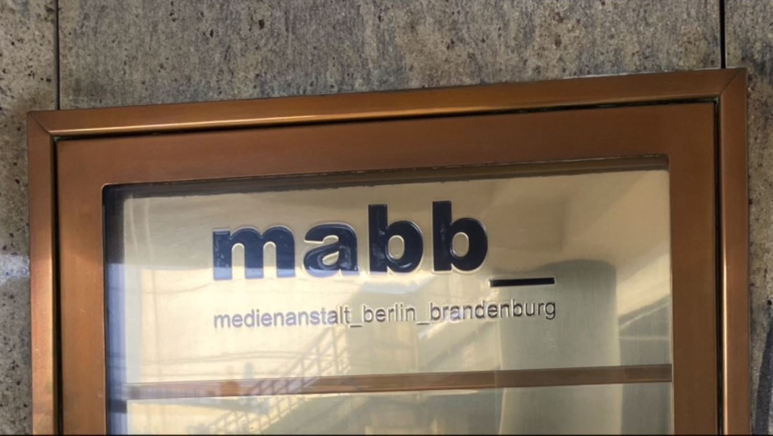 Eingangsschild der Dependance der Medienanstalt Berlin-Brandenburg (MABB) in Berlin-Mitte. Bild: RT