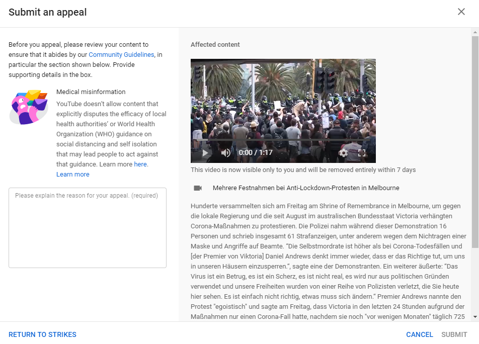 Zurück zu "Medizinische Fehlinformation" – YouTube-Kanal von RT DE gesperrt