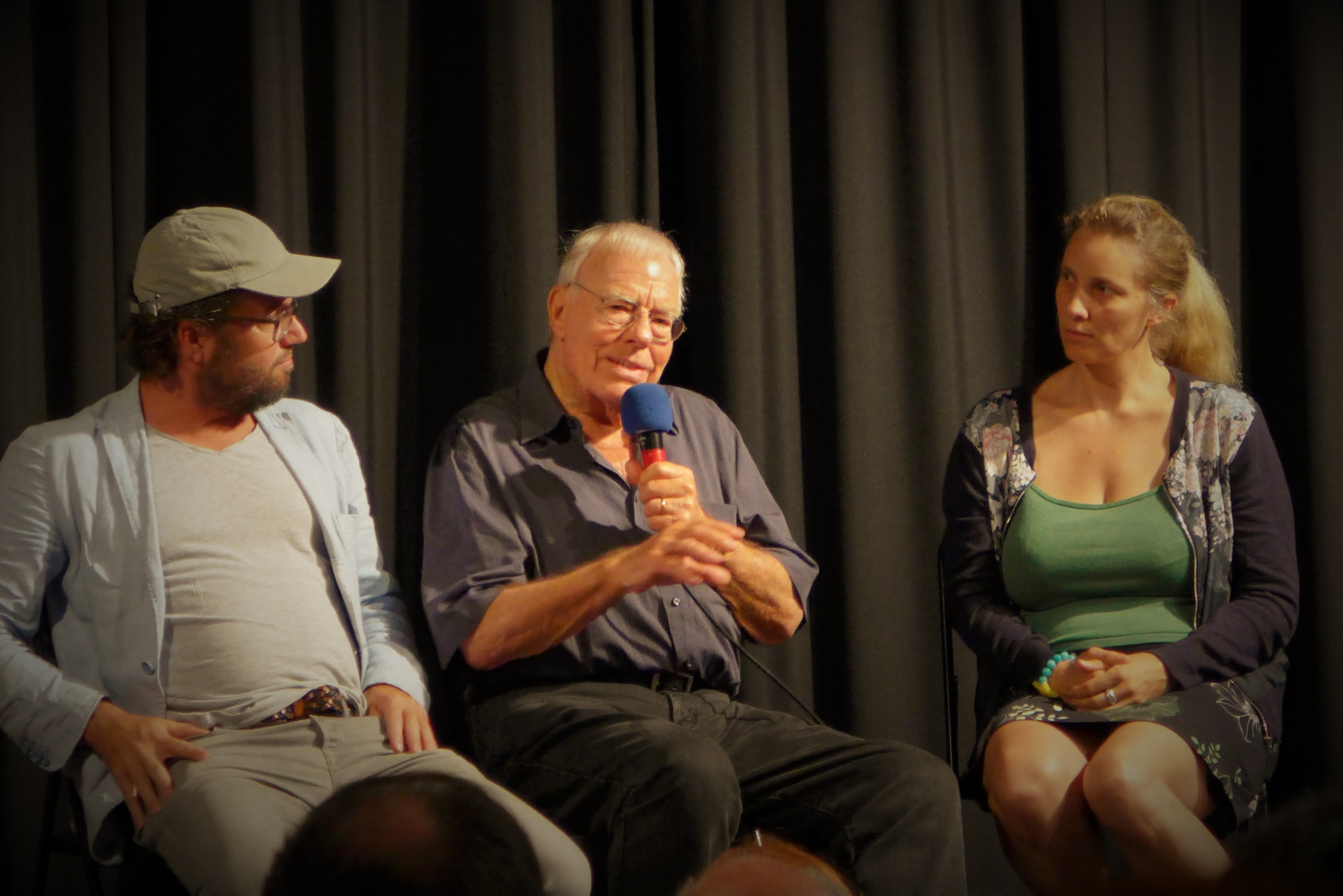 Christian Bruhn mit Marie Reich und Constantin Ried bei der Vorstellung des Dokumentarfilms Meine Welt ist die Musik – Der Komponist Christian Bruhn, 2018