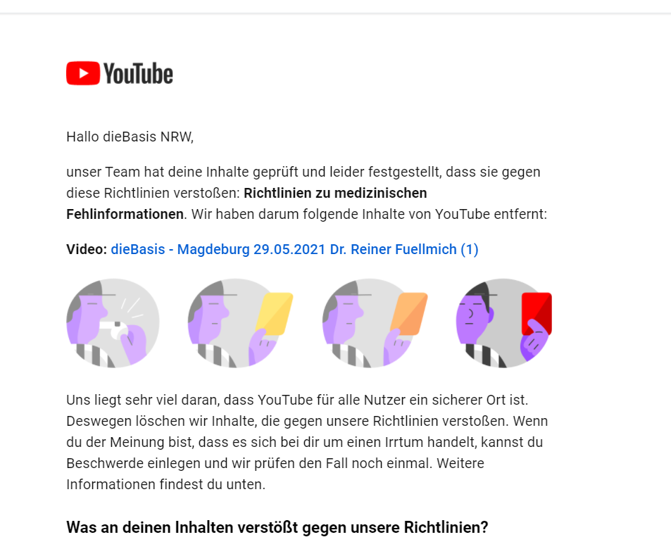 YouTube Löschung des Landesverband-Kanals von dieBasis NRW