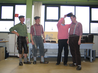 Der Inhaber und Chef der Hutfabrik, Hans-Theodor Wegener übergab die Kappen höchstpersönlich an die "Basaltköpp". Bild: ExtremNews / Thorsten Schmitt