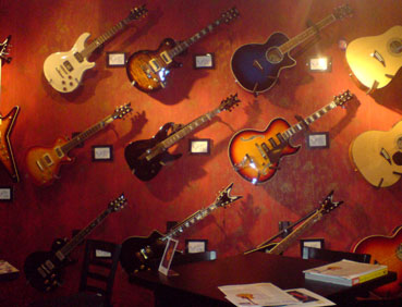 Diese Wanddeko bei Musik Meyer lässt Gitarristen-Herzen höher schlagen Bild: ExtremNews / Steffen Dittmar