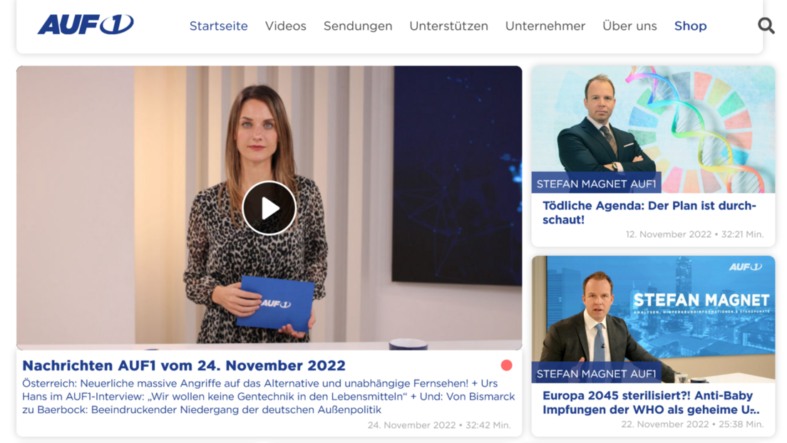 Bild: Screenshot von der Homepage des Senders "Auf1", 24. November 2022 / RT