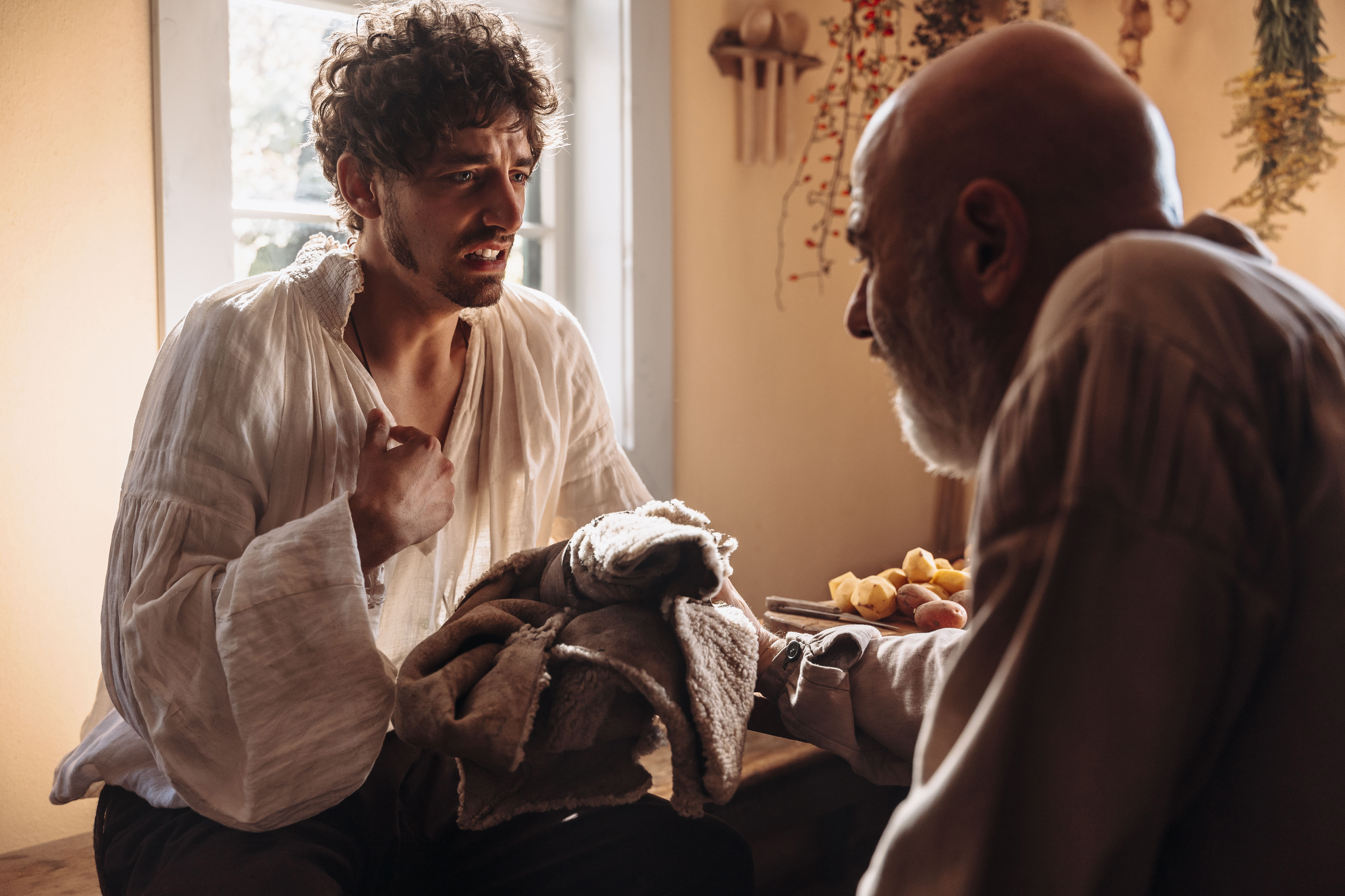 Vater Peter (Prodromos Antoniadis) mit seinem Sohn Hans (Jason Giuranna) Bild: ARD/MDR/BR/HR/SR Fotograf: Michael Kremer