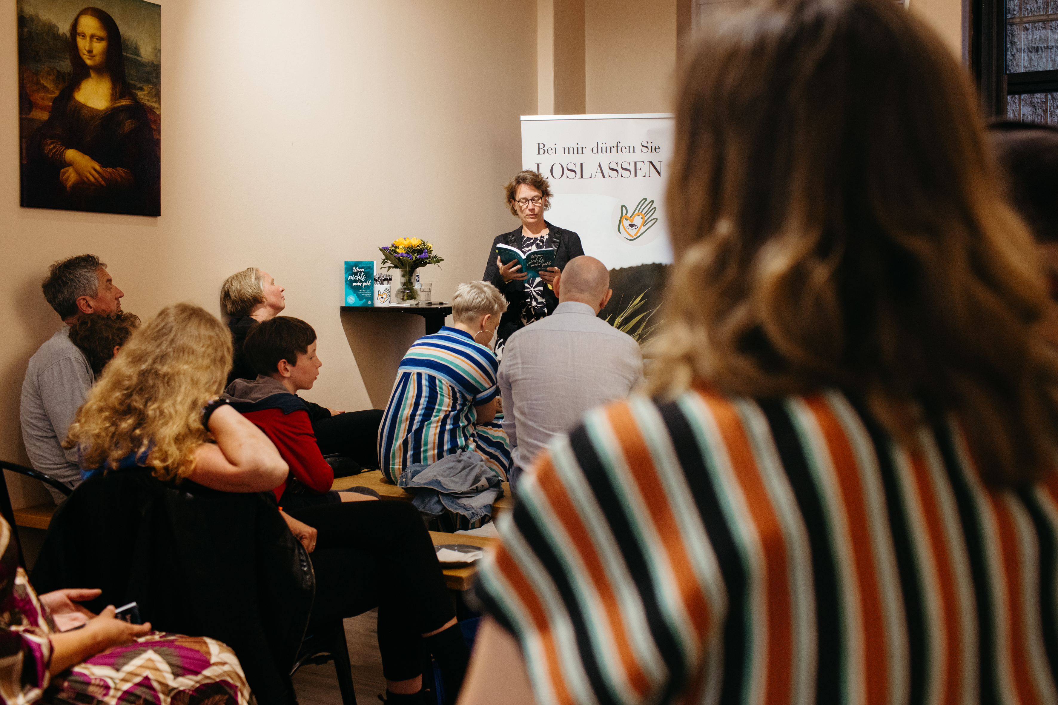 Stefanie Schnier bei ihrer ausverkauften Lesung im Café Melon in der Greifswalder Straße in Berlin (2025) Bild: Stefanie Schnier Fotograf: Stefanie Schnier