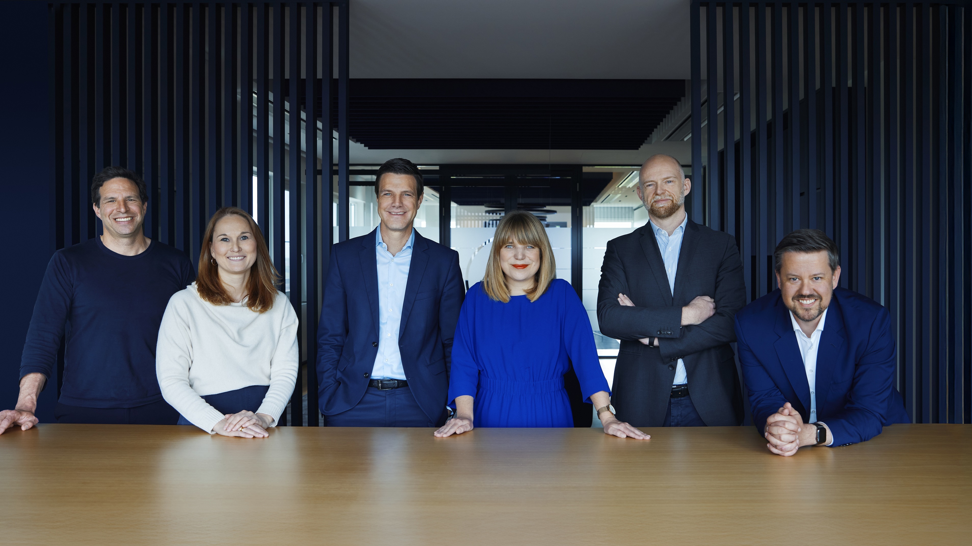 Thomas Düffert (CEO), Adrian Schimpf (CFO) und Bernd Hellermann (COO), Sven Oliver Clausen, Janka Lampe, Dirk Langer, Hannah Suppa, Jakob Mies und Denni Klein an (v.l.n.r.) (2025) Bild: MADSACK Mediengruppe Fotograf: Jan Schölzel