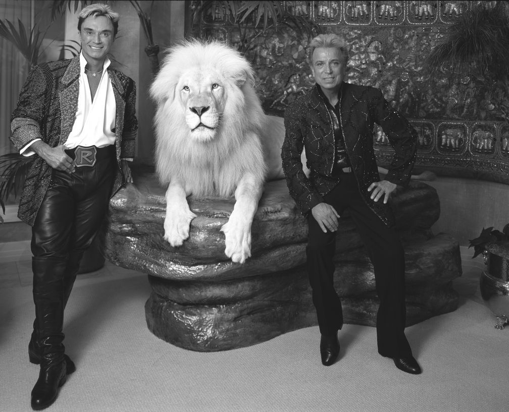 Siegfried (rechts) und Roy mit einem weißen Löwen