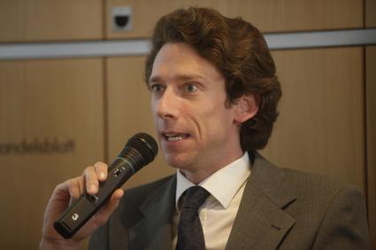 : Konstantin Neven DuMont (Mediengruppe DuMont / Vorstand) bei der Veranstaltungsreihe media coffee der dpa-Tochter news aktuell in Düsseldorf. Das Thema der Diskussion lautete "Gewinner und Auslaufmodelle - Wer profitiert von der Medienkrise?". Bild: obs/news aktuell GmbH