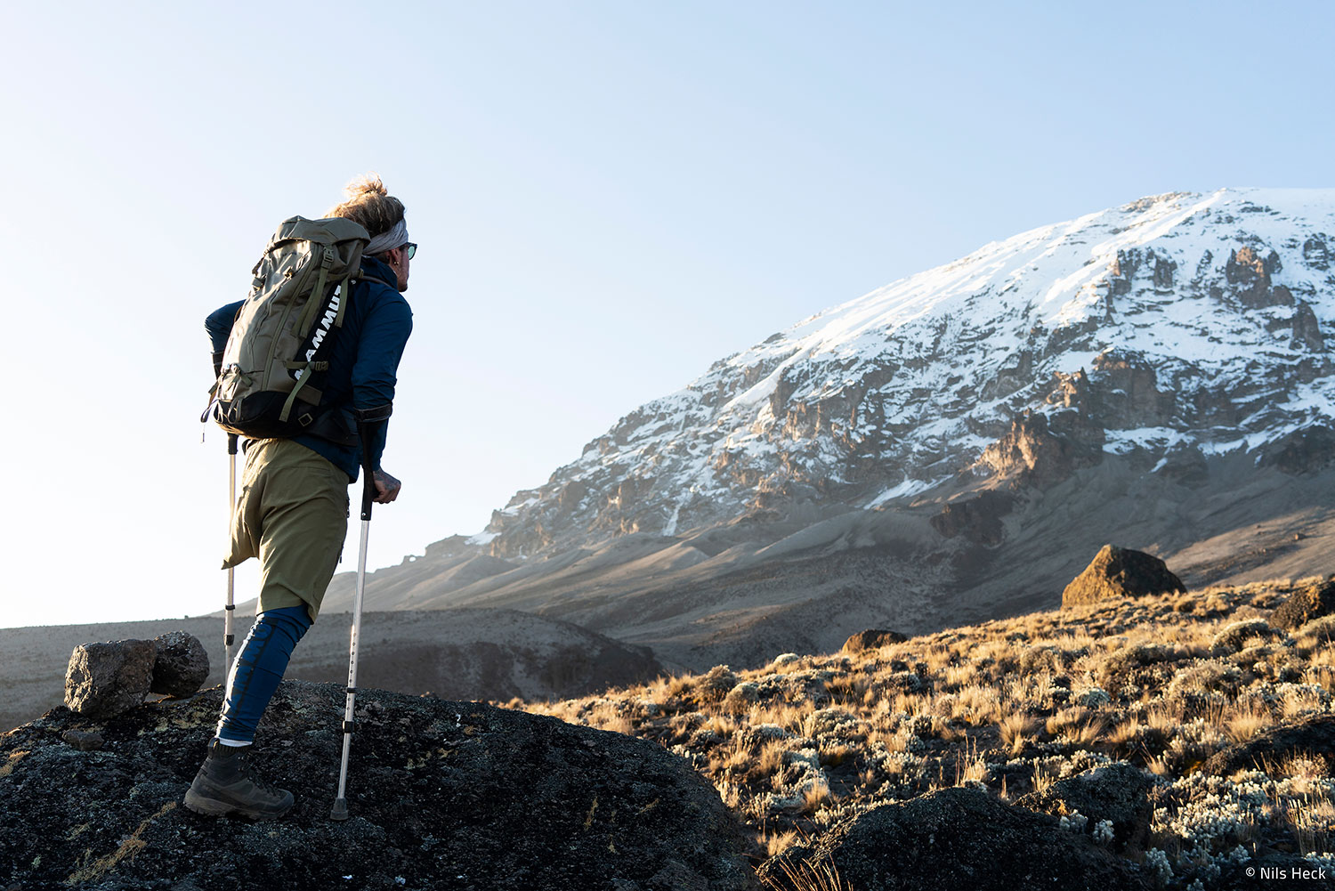 Tom Belz - mit Krücken und einem Bein auf den Kilimandscharo // Mit 8 Jahren verlor der Offenbacher Tom Belz aufgrund einer Krebserkrankung sein linkes Bein. "Mzubi Dume - Strong Goat" dokumentiert Toms Weg auf den Kilimandscharo. Bild: "obs/Moving Adventures Medien GmbH/Nils Heck / E.O.F.T. 18/19"