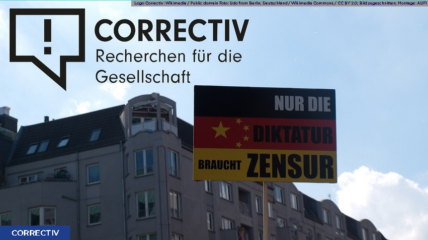 Bild: Logo Correctiv: Wikimedia / Public domain Foto: Udo from Berlin, Deutschland / Wikimedia Commons / CC BY 2.0; Bild zugeschnitten; Montage: AUF1 / Eigenes Werk