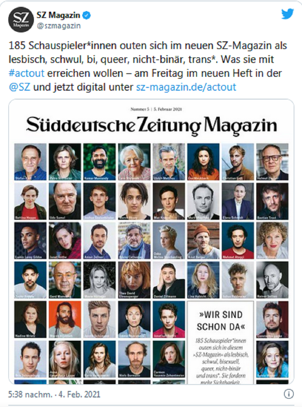 185 deutsche Schauspielerinnen und Schauspieler outen sich