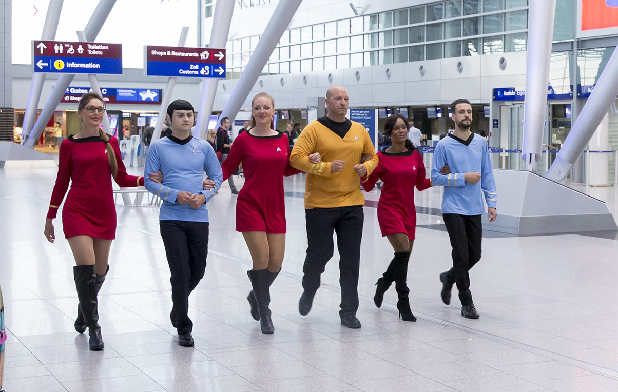 Am 8. September 2016 feiert Star Trek 50-jähriges Serienjubiläum. TELE 5 und airberlin haben dafür die Star Trek-Crew für einen exklusiven Linienflug rekrutiert. Bild: "obs/Tele 5/Andreas Wiese"