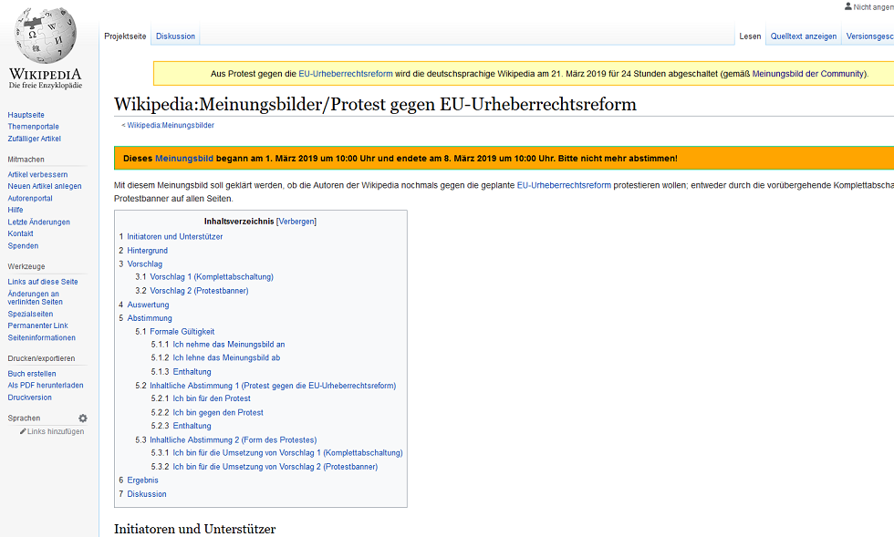 Wikipedia:Meinungsbilder/Protest gegen EU-Urheberrechtsreform