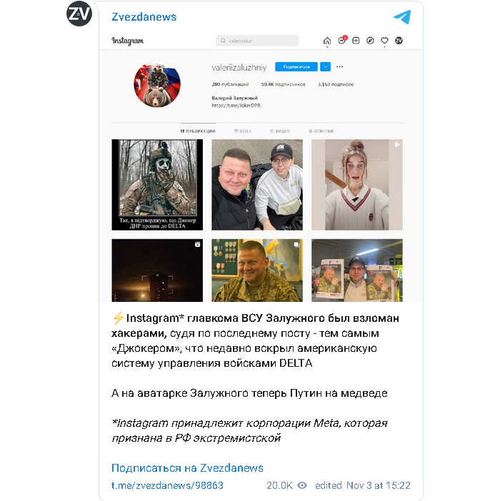 Zurück zu Bericht: Instagram-Account des ukrainischen Oberbefehlshabers gehackt