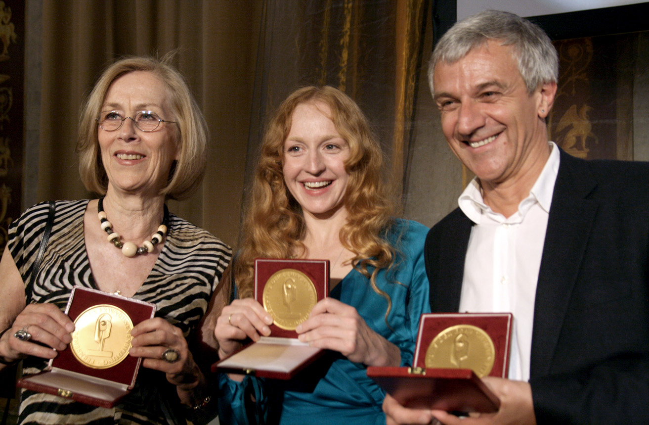 Brigitte Hobmeier (Mitte) mit Dagmar Hirtz und Peter Probst 2011 bei der Verleihung des Fernsehpreises der Österreichischen Erwachsenenbildung