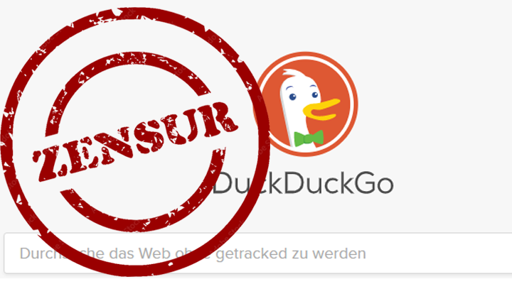 Bild: DuckDuckGo Wikimedia Public Domai/ Stempel Zensur Adobe Stock/ WB Komposition / Eigenes Werk