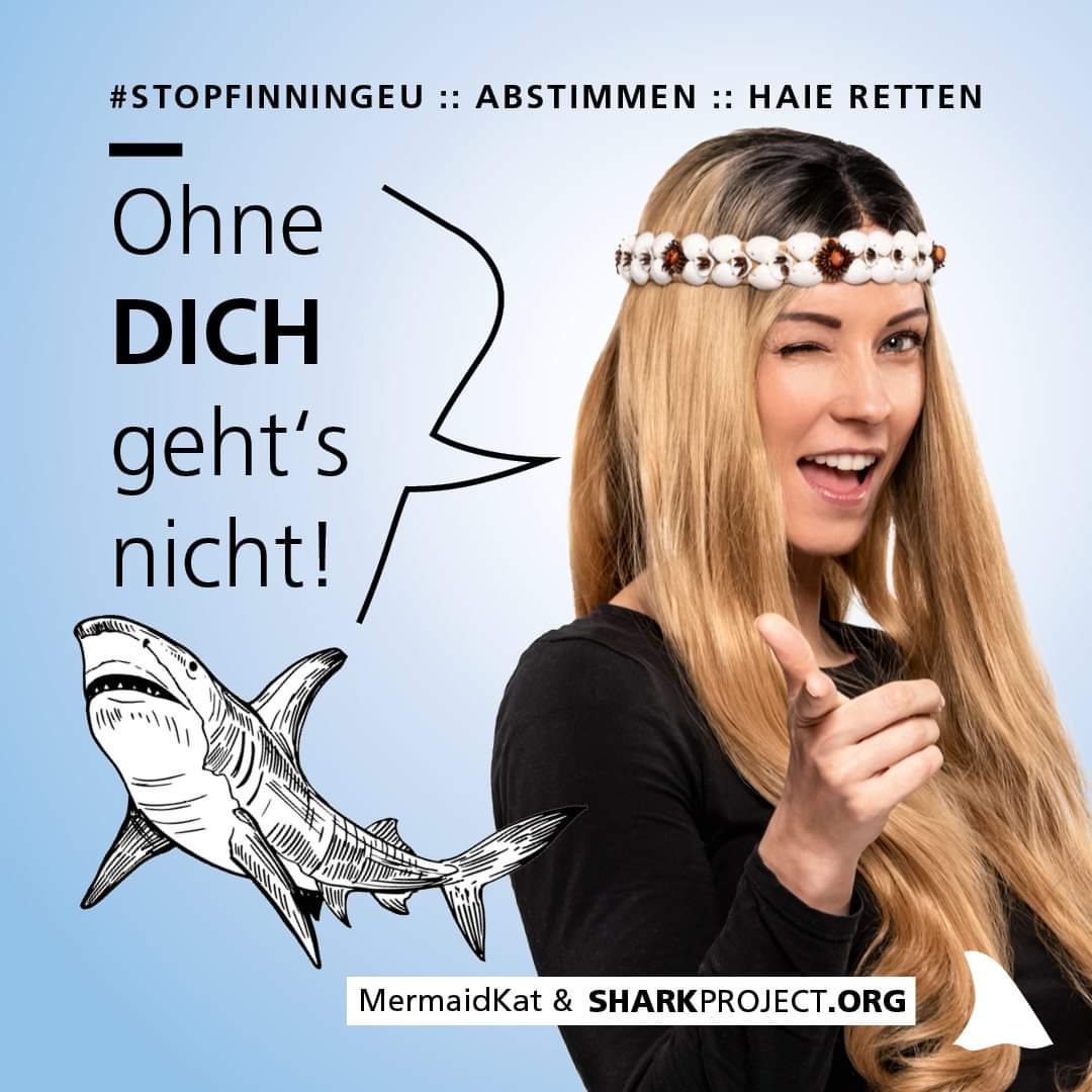 Influencerin MermaidKat wirbt gemeinsam mit vielen anderen Promineten für die EU-Bürgerinitiative #StopFinningEU. Bild: Sharkproject Fotograf: Katrin Gray