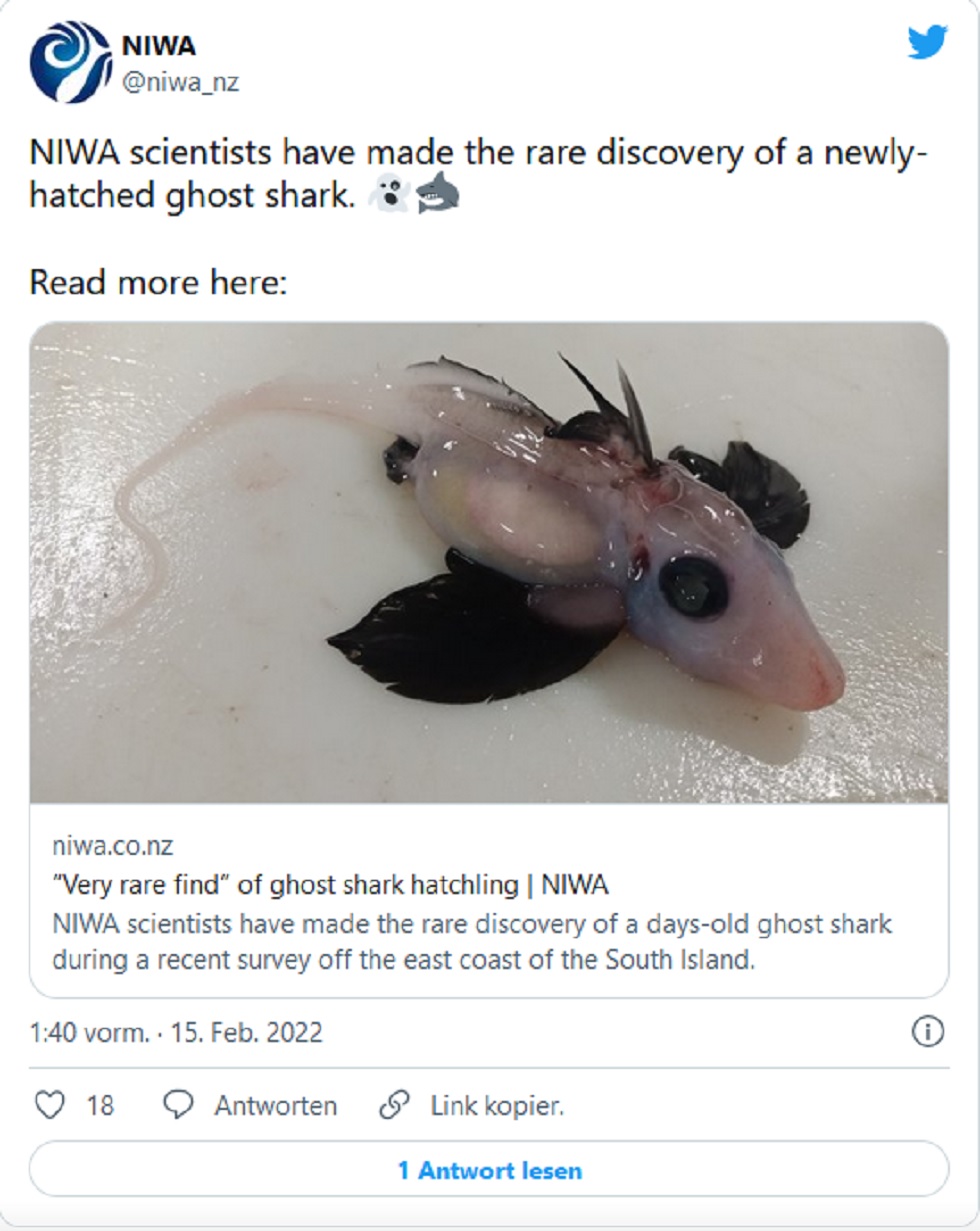 Zurück zu In tiefen Gewässern vor Neuseeland: Seltener Baby-Geisterhai entdeckt