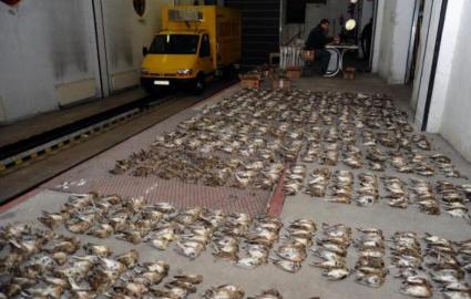 Das Foto zeigt einen Teil der in Nagylak beschlagnahmten Singvögel. Im Hintergrund ist der gelbe Kühltransporter zu erkennen. Die Verwendung dieses Bildes ist für redaktionelle Zwecke honorarfrei. Veröffentlichung bitte unter Quellenangabe: "obs/Komitee gegen den Vogelmord e. V."