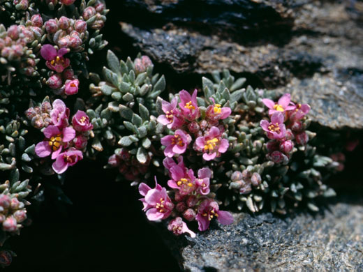 Alpine Pflanzen wie die Nevadensia purpurea könnten in wenigen Jahrzehnten von manchen europäischen Gipfeln verschwunden sein. Quelle: (Bild: Harald Pauli) (idw)