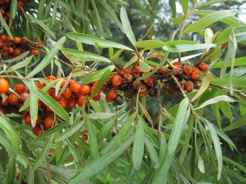 Schaden durch die Sanddornfruchtfliege an der Sanddornsorte `Sirola` am 22.8.2013 in Gülzow Quelle: Foto: F. Höhne (idw)