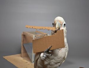 Goffin-Kakadu: Er stanzt sich aus Pappe ein eigenes Werkzeug. Bild: Bene Croy