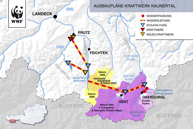 Ausbaupläne des Kraftwerks Kaunertal. Bild: WWF Austria