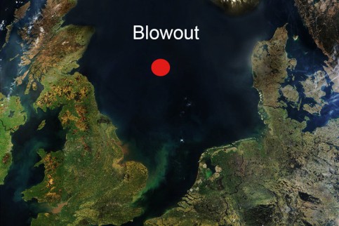Lage des Erdgas-Lecks in der Nordsee. Bild: NASA / wikipedia.org