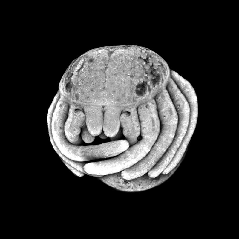 Spinnenembryo: Ansicht des sich entwickelnden Kopfes. Quelle: Foto: Universität Göttingen (idw)