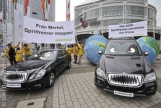 IAA 2009: Erleben, was stagniert! - Aktion am Haupteingang der Messe. Bild: Bert Bostelmann / Greenpeace