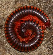 Eine noch namenlose Art von madagassischen Feuertausendfüßern (Aphistogoniulus sp.). Die hier gezeigten giftigen Tiere sind etwa 15 Zentimeter lang und besitzen eine auffällige Warnfärbung. Bild: K. Schütte, Zoologisches Institut und Museum Hamburg