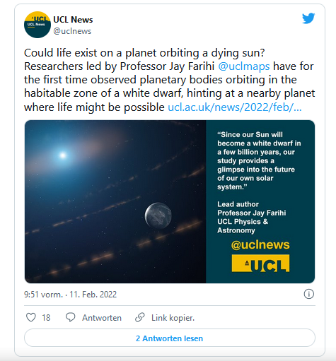Zurück zu Planetenkörper wurden zum ersten Mal in habitabler Zone eines weißen Zwergs entdeckt