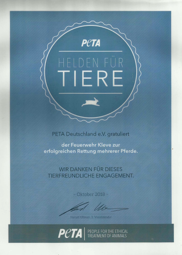 Feuerwehr Kleve erhält Auszeichnung "Helden für Tiere"